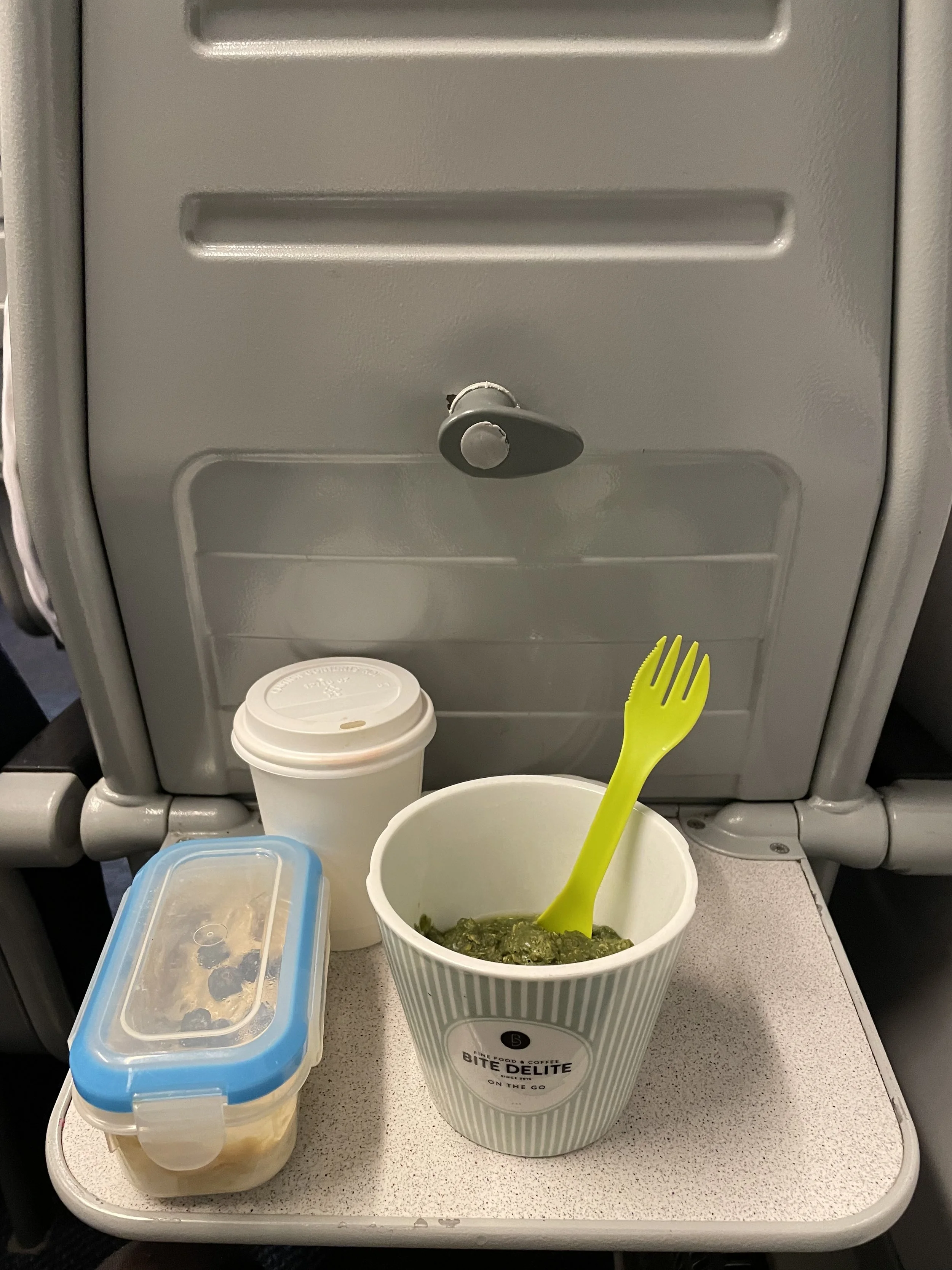 I decided to have my breakfast on the train at 8 AM because it’s convenient on the train and it’s also my usual time for breakfast. I prepared my overnight oats with raisins, nuts, seeds, blueberries and a scoop of Athletic Greens AG1 and Huel Protein powder. Additionally, I also brought a little yogurt from Alpro with me. I knew there would be a coffee shop at the train station so I didn’t need to bring one myself.