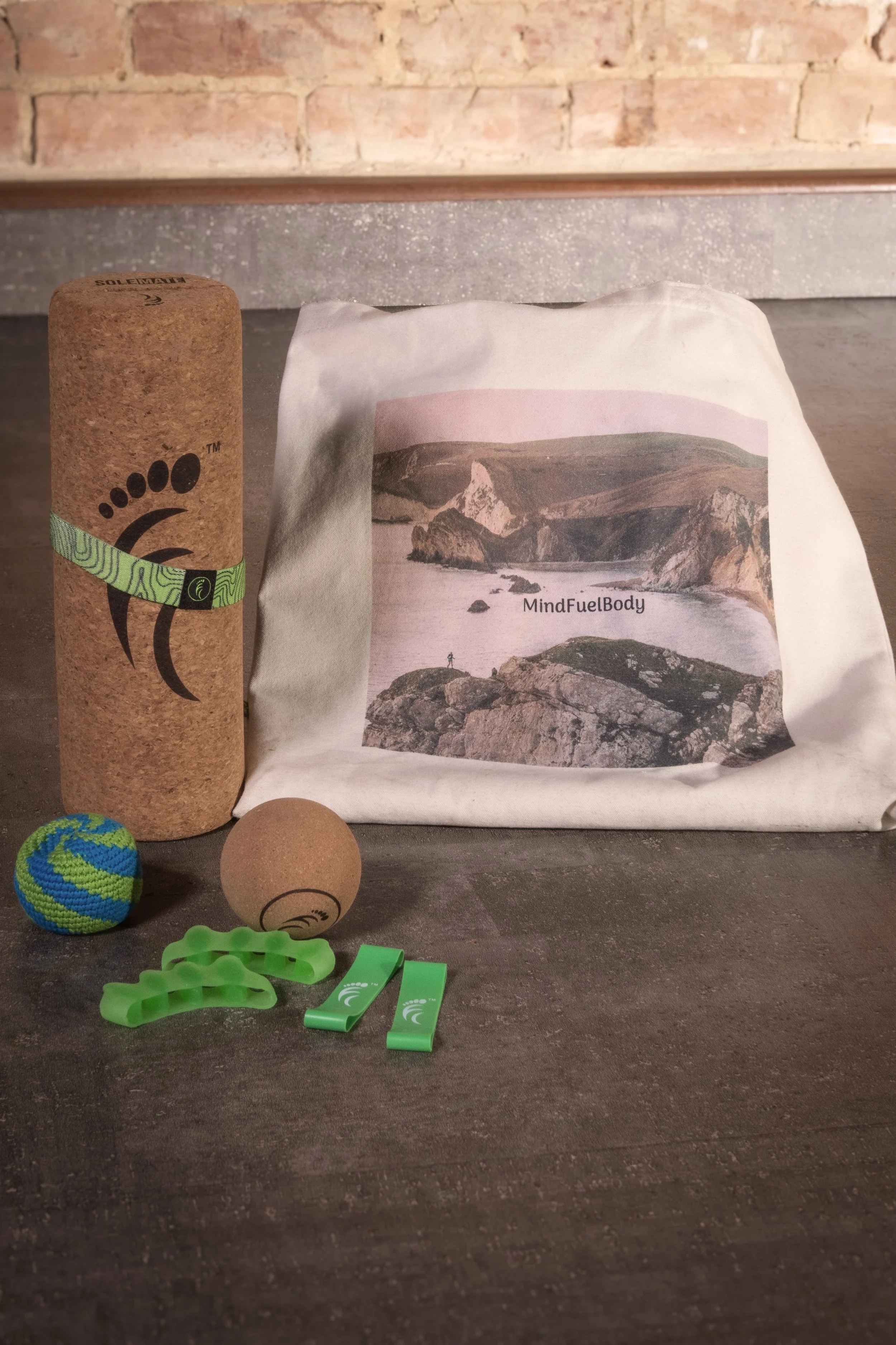 This versatile kit includes toe spacers, a cork mobility ball, a latex toe-resistance band.